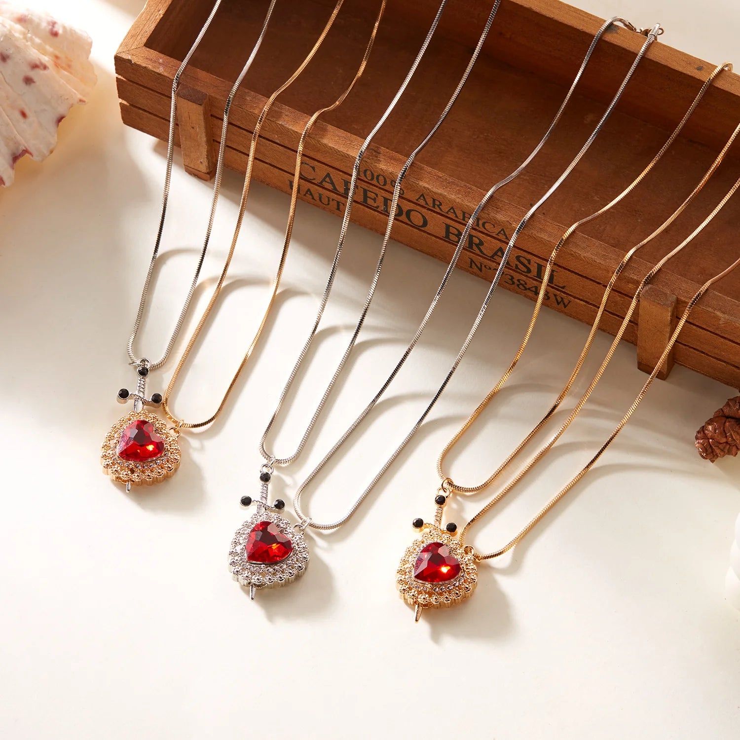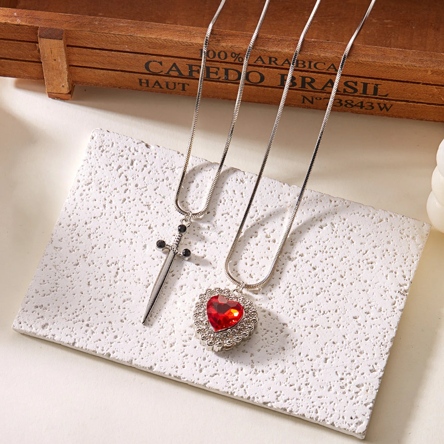 Este colar elegante apresenta um pingente de espada e um pingente de coração que se encaixam perfeitamente, representando tanto a força quanto a paixão. Feito de materiais de alta qualidade, este colar é uma ótima adição ao seu guarda-roupa. Mostre seu amor e coragem com o Colar Espada e Coração LoveHeart Commigo.